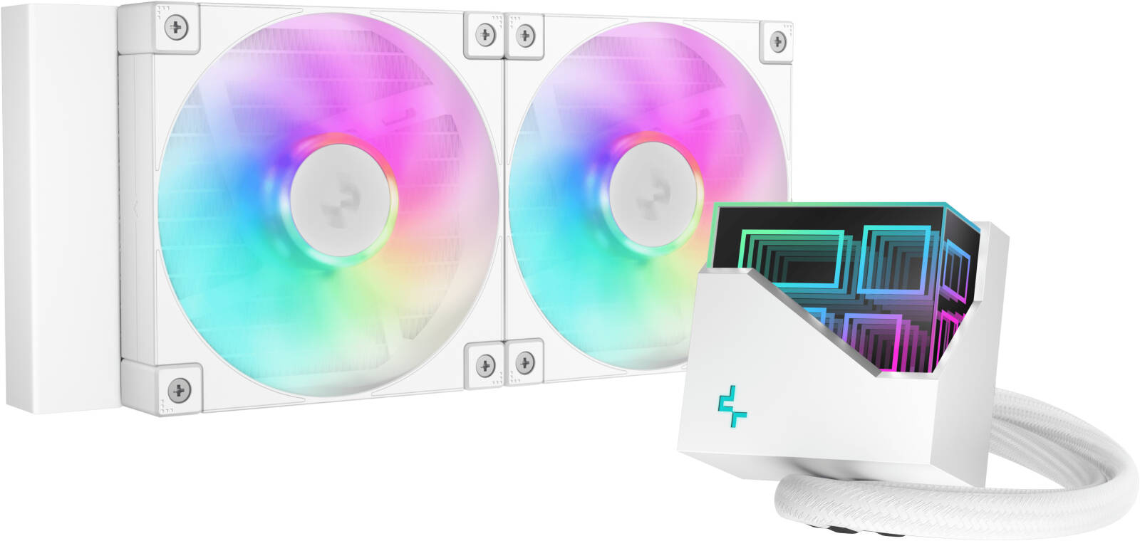 يحتوي مبرد مائي DeepCool LT240 ARGB Liquid CPU Cooler Wh على مروحتين بحجم 120 مم تم تصميمهما لتوفير أفضل تدفق هواء ممكن عبر الرادياتير.