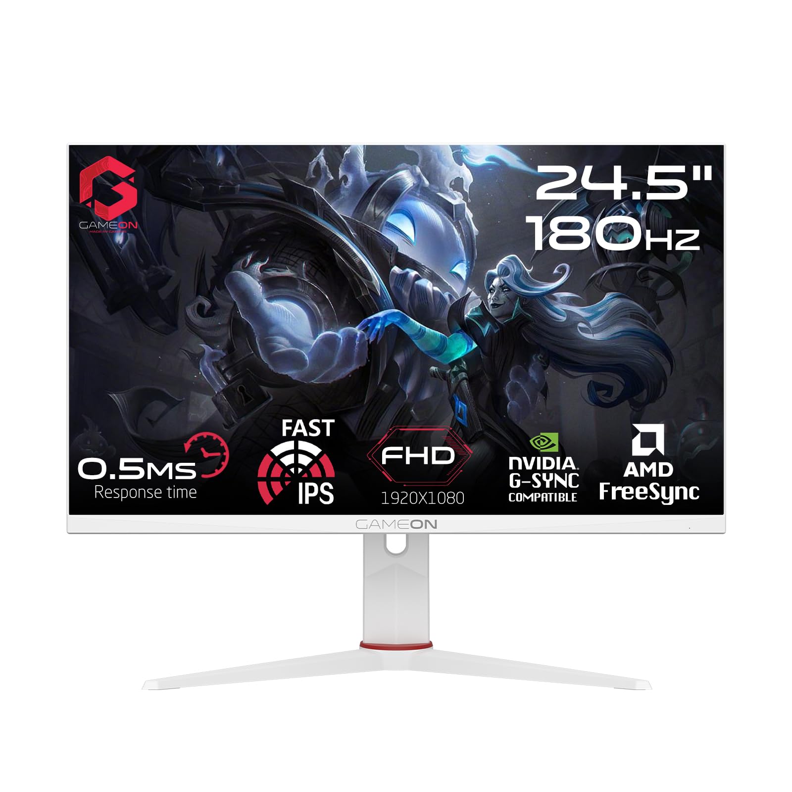 شاشة GAMEON 24.5INCH IPS 180Hz 0.5Ms WHITE Support PS5 – أداء ألعاب احترافي بتصميم أنيق